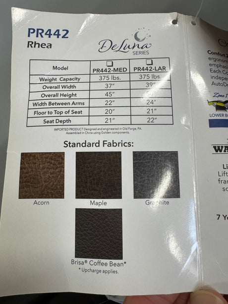 Golden PR442-MED Rhea Lift Chair in Acorn